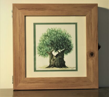 New! Our key boxes look like a picture frame but the frame forms a door that opens to store your keys safely inside the box! The box comes with fitted with a beautiful quality art print but the frame can easily be opened to insert an alternative artwork or a photo of your taste. This item is fitted with an art print of an olive tree from Jerusalem’s Garden of Gesthemane by local artist Shaima’ Farouki.