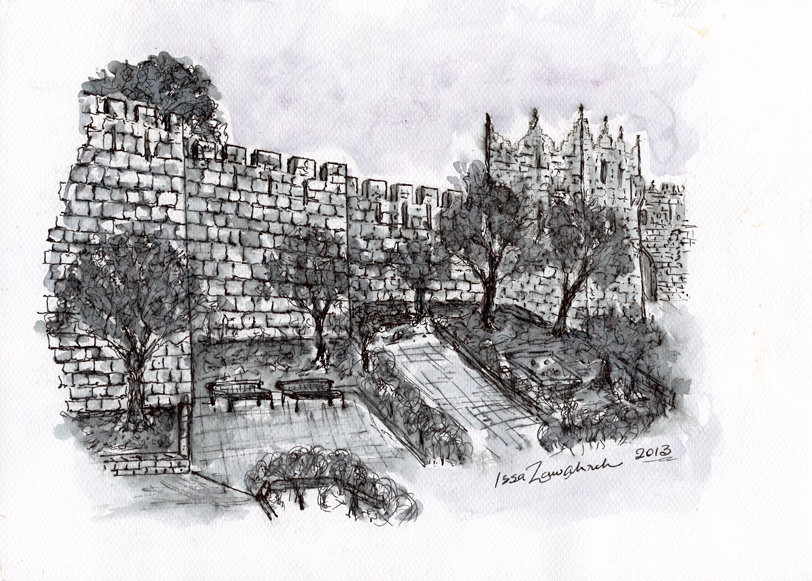 Issa A. Zawahreh was born in the Christian village of Taybeh, near Ramallah. As an active supporter of the Jerusalem Artists Collective, he nurtured and trained many aspiring young artists. His own work focuses on paintings of pastoral landscapes, rustic buildings and Jerusalem cityscapes. Issa died peacefully in Jerusalem on the 1st of December 2014, his 70th birthday.