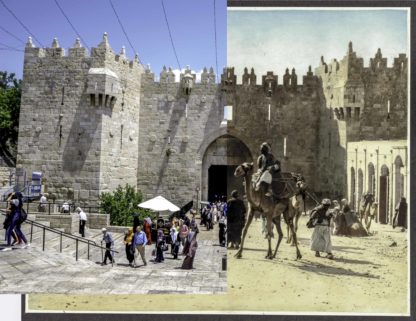 Jerusalem’s landscape as we know it today is merely a surface layer, a slice in a long tumultuous history that has continuously seen people and civilizations taking over from preceding ones. Over time, layers are obscured and sometimes obliterated to the point where one can find only a few traces or ruins. Superimposing an additional layer, a photograph taken today of the same location, onto that taken by the American Colony photographers some hundred years ago, shot from the same spot and the same angle, moves us between two distinct periods of time. It allows us to study the changes that have occurred, make comparisons, and align the physical transformations with the events that took place in the city and around the region during the last century.