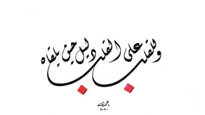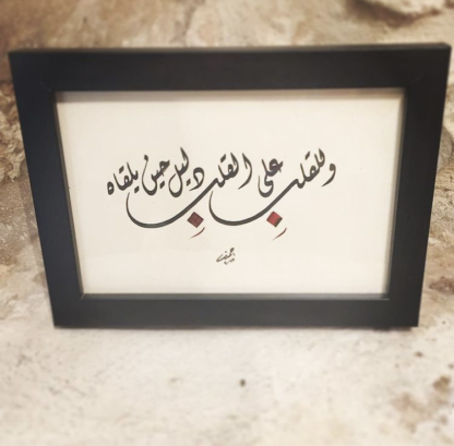 This original piece of handpainted Arabic calligraphy says “One heart recognizes another when they meet” in Diwani script.